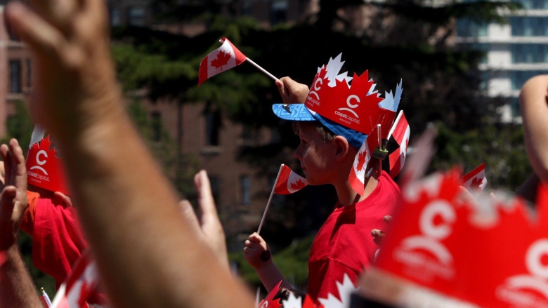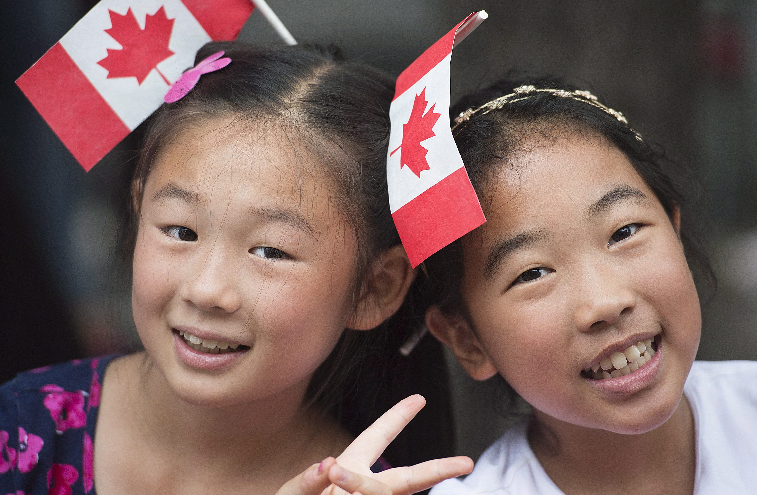 在多伦多观看游行的孩子们。