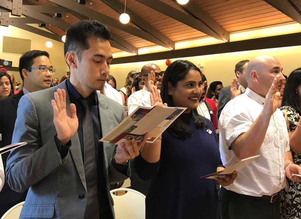 来自21个国家的53个幸运者在国庆节当天进行宣誓入籍仪式。