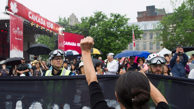 有庆祝游行也有抗议游行,毕竟魁省的“国庆节”是6月24日而不是7月1日。