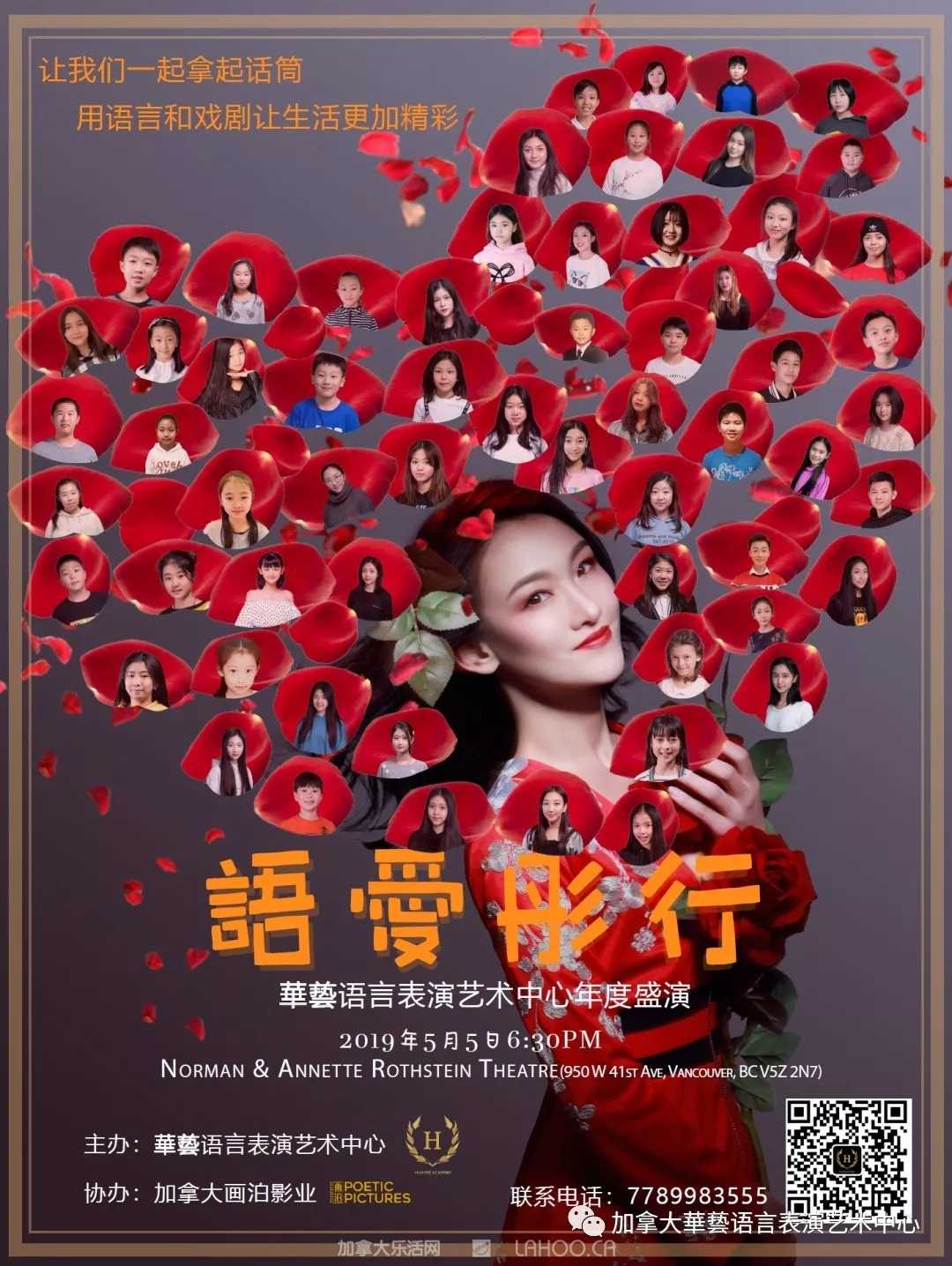 为了杜绝语言暴力,让语言能够传递爱,华艺语言表演艺术中心在今年的年度汇演中以此为题,筹办了《语爱彤行》主题公益晚会,晚会将在5月5日,于Norman&Annette Rothstein Theatre举行。《语爱彤行》所有的节目将由华艺语言艺术艺术中心的学员带来,这是2018年建校以来,首次举办的大型晚会。