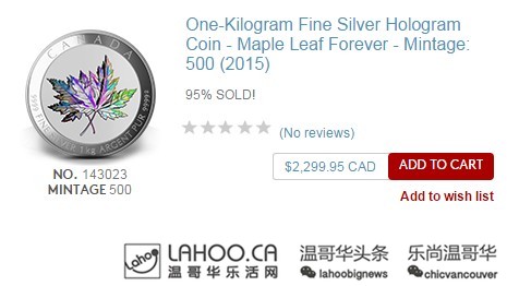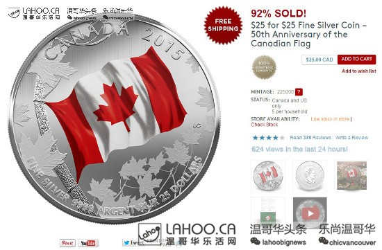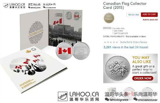 枫叶旗50周年小礼物:两枚纪念币只需五毛!2020-09-09 |作者: | 来源:生活Loading...分享: 温哥华乐活网原创稿件,未经允许请勿转载 由加拿大皇家铸币厂发行的这两枚枫叶旗50周年纪念币,现在可以在其官方网站http://www.mint.ca/store/coins/coin-prod2400421?lang=en#.VY0IG_lViko 订购! 包邮!免税!而且只需要$0.50,只要五毛钱!每个账号只能买一件。还赠送精美的纪念小册子!就算对收集硬币没兴趣,反正就五毛钱没凑个热闹感受一下国庆的气氛也好啊。而且毕竟是五十周年啊,收藏价值和意义都很大呢! 还有更多纪念币,有兴趣的可以浏览http://www.mint.ca/store/buy/all-coins_coins-cat240002 。加拿大皇家铸币厂的金币和银币在世界范围内是纯度高质量好,送礼收藏都很不错呢~ 这个直径2.7cm的限量银币只要$25! 世界著名景点的纪念银条 枫叶旗50周年纪念币套装 2015年温哥华女足世界杯纪念币套装 1公斤重的枫叶银币 1公斤重的枫叶金币…这个必须电话预定 本文发布于: 2015-6-26 01:18 阅读 未经允许不得转载:加拿大乐活网 »枫叶旗50周年小礼物:两枚纪念币只需五毛!分享: