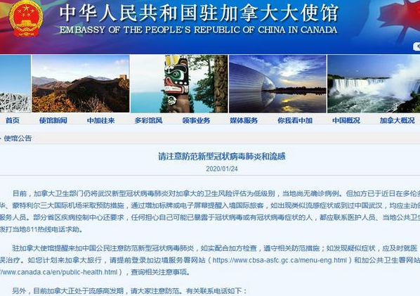 中国驻加使领馆再次提醒临时来加中国公民,提高防范新冠肺炎意识,如实配合加方检查,遵守相关防范措施或建议;如发现疑似症状,应及时就医,以免延误治疗。如果您遇到困难,需要我们的领事保护与协助,请及时同我们联系: