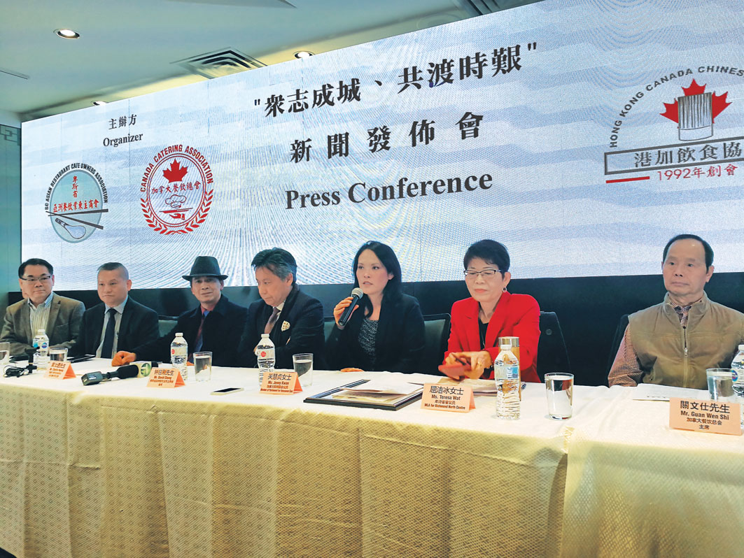 加拿大餐饮总会周五下午在列治文一间中餐厅举行“众志成城、共度时艰”发布会,向政府、业内人士及消费者呼吁,共同支持温哥华中餐业的发展,加拿大国会议员关慧贞、BC省议员屈洁冰、列治文市议员区泽光等政要出席支持,他们指出,大温中餐馆已经竭尽所能地加强卫生防疫管控,在大温的中餐馆吃饭是安全的。