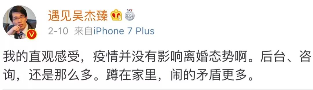 著名离婚律师吴杰臻直言:疫情并没影响离婚态势。蹲家里的夫妻,该吵该闹的,一个也没落下。