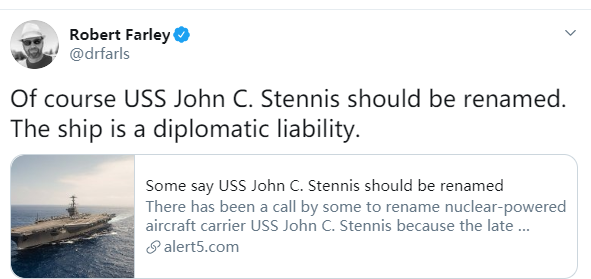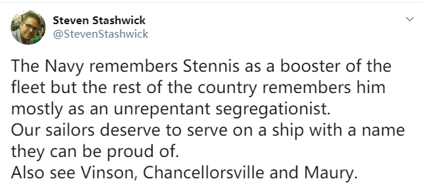 值得一提的是,这些支持更名的网民大多指出,虽然斯坦尼斯对美国海军的发展有功,但他的问题也十分明显,而且在当下这个时代更越发地凸显出来,所以到了该改名的时候。