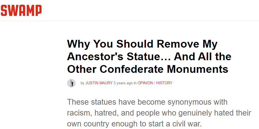前面提到美国莫雷号驱逐舰的名字来源、美国南方邦联军将领马修·莫雷的后人,也早在3年前就撰文主动呼吁将纪念他先人的雕像以及其他南方邦联的雕像移除,称这些雕像已经成为种族主义与仇恨的象征。