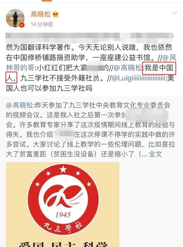 这意思就是九三学社只接受中国籍社员,所以我不是美国人。
