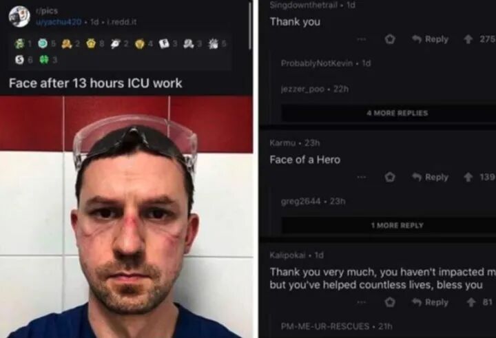甚至,同样都是晒出医护人员的辛劳,国外网上对中国医护和其他国家的医护的态度就完全不一样……