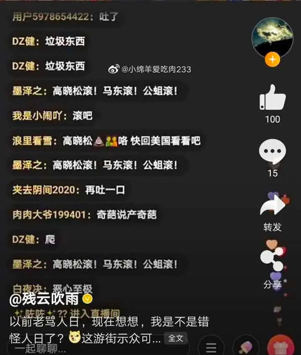 但就昨天的直播而言,网友是专门针对高晓松砸场子来了。
