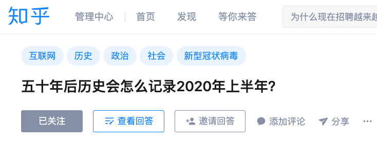 今天,知乎上有人这样提问:《50年后人类的历史如何记录2020年这上半年?》