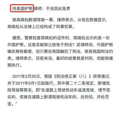 如9年前高晓松因酒驾被捕,酒劲儿还没下去的高晓松,慌忙中掏出了自己的美国护照。
