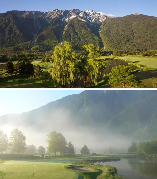 Nickolas North高尔夫球场位于惠斯勒一个低缓的山谷,是一个71杆,18洞的国际高尔夫标准场地,惠斯勒巍峨的雪山、澄澈的湖泊、壮观的冷杉林为球场的颜值助攻,就是这种得天独厚的优势让Nickolas North高尔夫球场常年荣登来客首选。