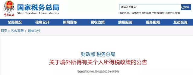 其实,中国税收新政其实在2019年就已经实施了,今年1月,国家税务总局专门发布了《关于境外所得有关个人所得税政策的公告》,详细阐释境外居民个人所得税政策,只是由于种种原因并没有大张旗鼓的宣传。