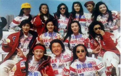 黄金时代的港圈几乎没有和钟丽缇撞型的女演员。从成龙与一众港星美女的经典合影中可以看出,其他女星都是肤白貌美、蚂蚁腰大长腿,而钟丽缇整体骨架比其他女星大一个size,算是健康丰满一型。