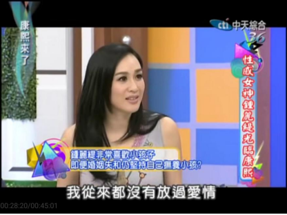 钟丽缇曾被台湾《康熙来了》的主持人蔡康永问道,“你经历过两次婚姻后,会觉得自己不适合结婚这件事吗?”