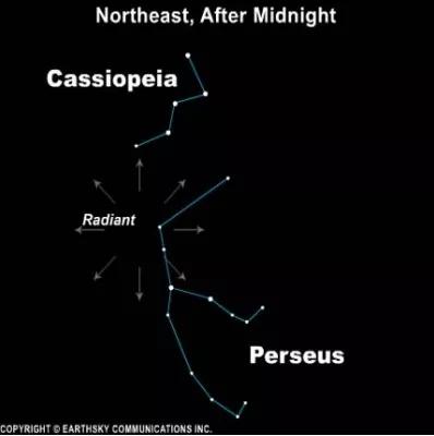 英仙座(Perseus)的命名源自古希腊神话中杀死女妖美杜莎的英雄珀尔修斯, 其结构近似一个由数颗亮星构成的人字形,在夏季的夜空中非常具有辨识度。流星出现在天空中的方位是随即的,但所有的英仙座流星看起来都会像是从东北方向的英仙座辐射出来,因此得名。
