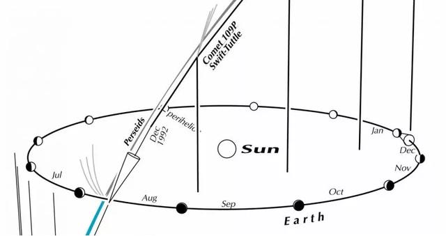 英仙座的流星雨的行程与一颗名为斯威夫特·塔特尔(Swift Tuttle)的彗星有关。当彗星靠近太阳时,太阳的热量会软化彗星上的冰,并将其他新鲜的彗星物质抛洒开来。当这些物质以每小时21万公里的时速与地球大气层产生摩擦时,绚丽的英仙座流星雨就产生了。