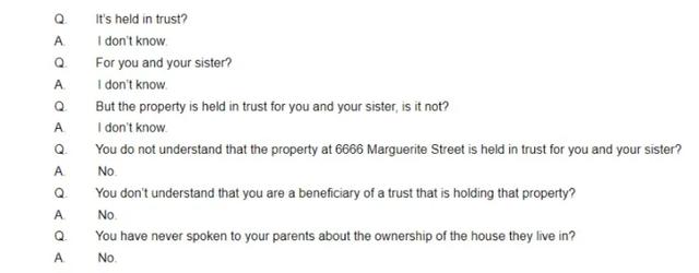 但她的装傻充愣还是有破绽——她提供给法庭的其他银行对账单,总有个黄标签挡住了地址。一来二去,吴娜承认,她在提交给法庭文件时,黄标签盖住地址就是这个房子,但是她仍然强调:“我真的在这房子里面没有任何利益!”