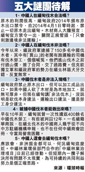 缅甸政府逮捕、宣判逾百中国违法伐木工,引起全球关注。事实上,中国商人买通当地「山大王」包山伐木,一座山的利润超过百万元人民币,尽管必须在枪林弹雨下讨生活,部分华商仍「乐此不疲」,也印证了「杀头生意有人做」的至理名言。