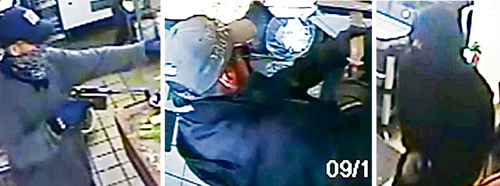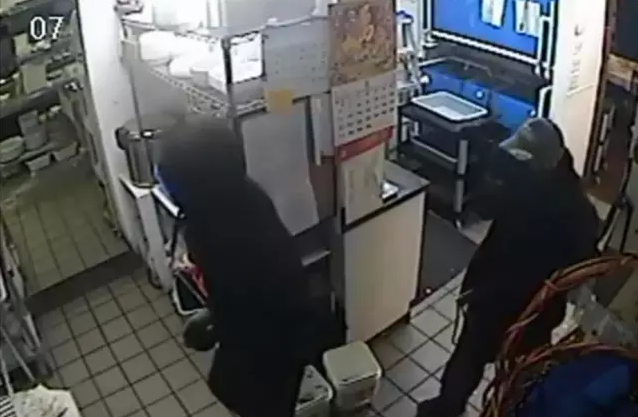 根据监控视频显示,歹徒从后门闯入餐厅,一名歹徒用枪控制了厨房的工作人员,另外两名控住了前台等工作人员和顾客。有员工惊慌失色蹲在地上,还有员工高举双手。