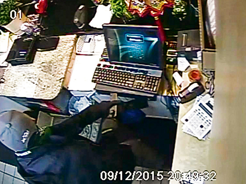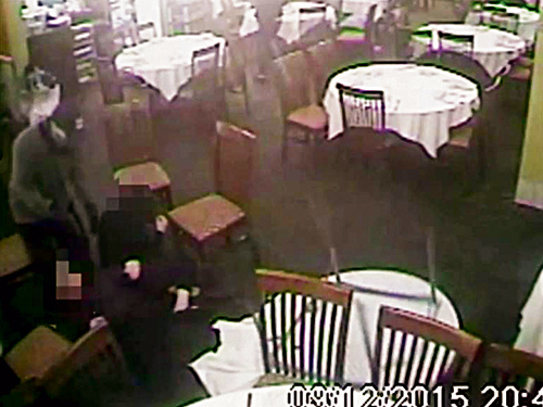 顾客们纷纷躲到餐桌下面,但其中一名歹徒暴力掀翻餐桌,用枪威逼藏于桌下的客人交出身上财物。一名持刀歹徒喝令顾客交出钱包及手表,冰想敲开收银机未遂,另一名同党将整个收银机举起来往地上摔,大量现金硬币洒了一地。