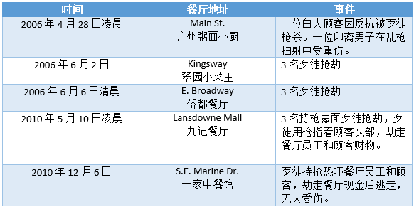 大温哥华区不止一次出现过餐厅被劫的事件,曾今还有餐厅顾客因反抗而被杀害的惨剧。