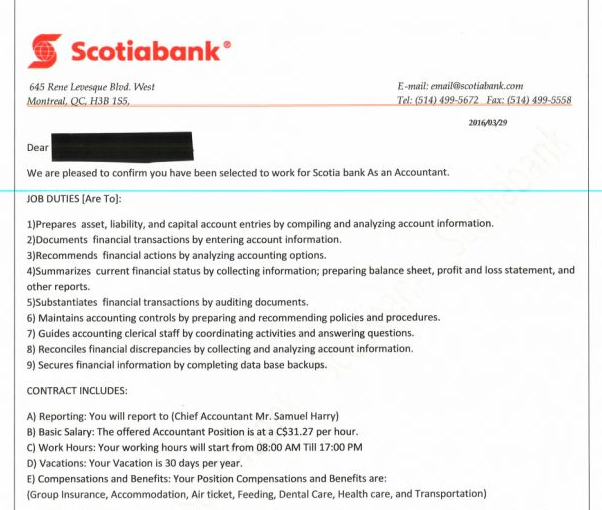各种名目的费用加起来,应聘者需要交相当于3000多加元,通常是通过一个指定的银行账户或者在网上支付。