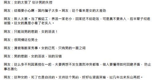 在开始两年里,死者的家人一直保持沉默,但随着越来越多标题和内容夸张狗血的文章出来,死者程锦被描述为一个贪慕虚荣、脾气暴躁、感情不忠,嫌弃没有豪宅、为了移民假结婚的形象,网友的评论也较为尖锐,死者家人终于忍不住发表公开声明。