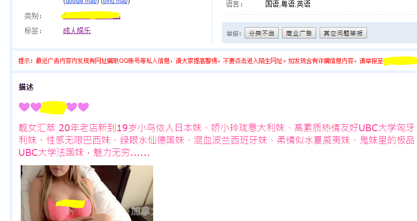 一直以来,大温各地区的公寓楼中隐藏着形形色色,收费不一的“鸡窝”,早已是公开的秘密,而且不少“鸡窝”是由华人开设,店内有来自世界各地的年轻女孩任君挑选,45分钟的服务费用从$180到$400不等。在本地一些知名的华人论坛上,甚至有专设的“成人娱乐”分类供各种“鸡窝”发布广告,可见市场需求之大。