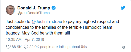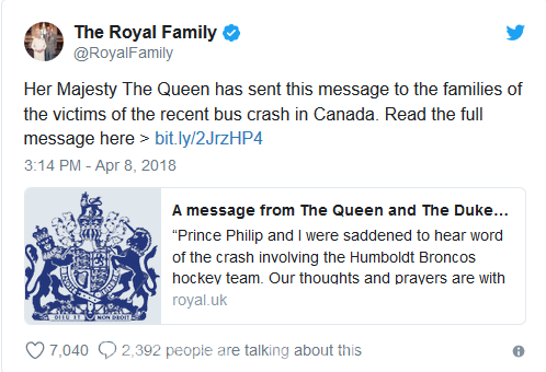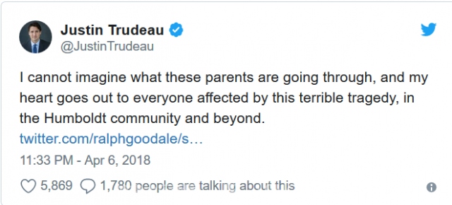 事故发生后,加拿大举国都沉浸在了悲痛之中,加拿大总理杜鲁多(Justin Trudeau)在第一时间发表推文表示哀悼。他说:"我无法想像他们的父母正在经历什么样的悲痛,我的心和所有受这场可怕悲剧影响的人在一起。"