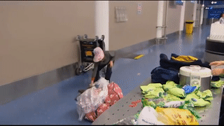 火眼金睛的海关一走过去,留学生只好又从垃圾桶里乖乖地拿出刚扔掉的违禁食物……