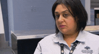 海关人员告诉大妈,在处理好这些未申报的食物之前,她不能离开。到这里其实都还是挺正常的。其实只要承认错误,说明情况,交好罚款就没啥事儿了。