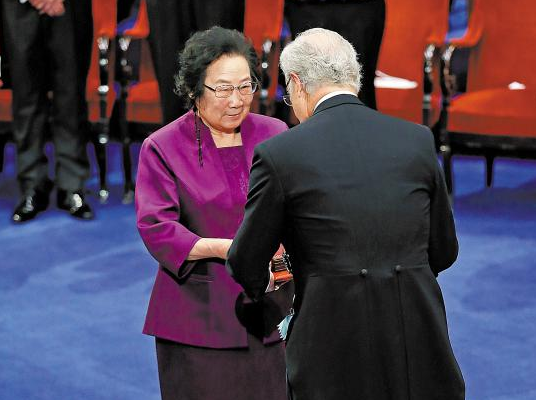 当地时间12月10日,中国女药学家屠呦呦在瑞典首都斯德哥尔摩音乐厅获颁2015年诺贝尔生理学或医学奖。