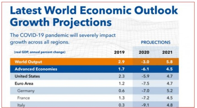 国际货币基金组织(IMF)今天(4月14日)发布了最新的世界经济展望报告,预计2020年全球经济将急剧收缩3%。这是新冠疫情全球大流行导致各国采取隔离和社交疏远等控制疫情的举措以来,IMF发布的第一个全球经济增长预测报告。IMF说,“大封锁”或将导致自“大萧条”以来最大的经济衰退。