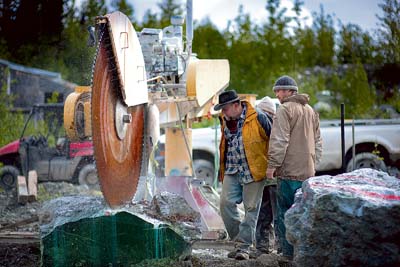 加国去年出口的玉石原材达到1,000吨,9成输华。图为梅克皮斯(左)巡视矿场业务。
