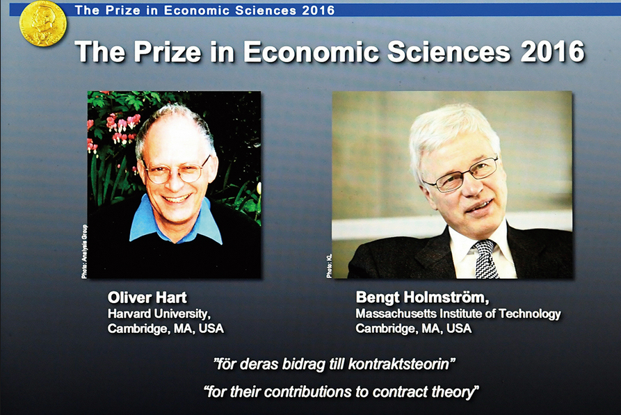 (加拿大乐活网lahoo.ca10月10日电)据观察者网报道,据诺贝尔奖委员会官网最新消息,10月10日17点45分,2016年瑞典国家银行纪念阿尔弗雷德·诺贝尔经济学奖,也即诺贝尔经济学奖,授予奥利弗·哈特、本特·霍姆斯特罗姆,以表彰他们对契约理论做出的贡献。