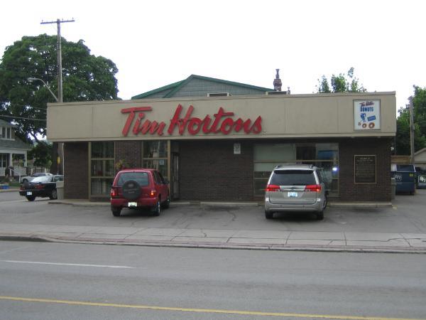 Tim Hortons第一间店面,建于1964年。店外有首间店的铭牌,及早期的招牌。