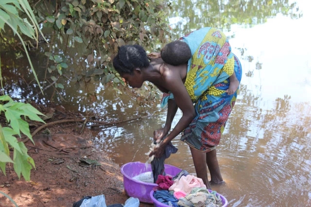 (在河里洗衣的当地妇女,平时在这里打水喝)