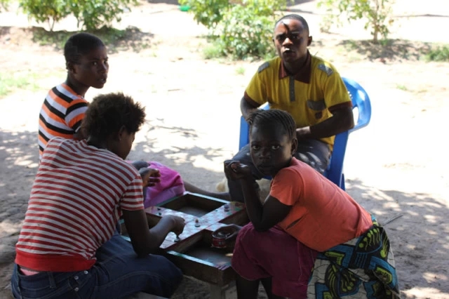 水果成熟时,也去摘果子。当地热带水果种类不多,常见的有芒果、香蕉、甘蔗等。摘芒果风险很大,容易被芒果蝇螫伤。芒果蝇是当地一种常见的寄生虫,伤人的同时会在人皮肤下产卵并繁殖生长,如果不开刀根治,幼虫会在里面长大,最后咬破皮肤钻出,期间引起伤口肿大化脓。跟我同届的女翻译曾被螫伤过,一周后,她拿刀亲手割开皮肤将幼虫抠出。所以,大部分时候我们就叫小黑(我们管黑人小孩叫“小黑”)去摘,每个芒果100刚郎。村民有的顶着大簸箕沿街叫卖,有的干脆坐在家门口树荫下,顾客要买的话,他们就一溜烟爬到树上去摘。