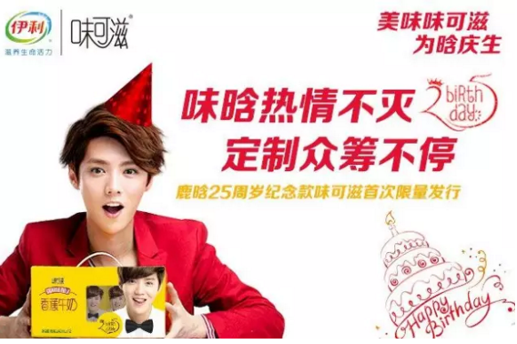 尊重用户主权,以消费者和粉丝群体为起点,伊利推出“鹿晗25周岁纪念款味可滋”,这个粉丝定制版产品在京东众筹大受追捧,在鹿晗的年轻粉丝群体里引发了抢购潮。用粉丝互动带动品牌互动,用众筹的方式来聚合爱的情感,粉丝们众筹的不只是味可滋,更是满满的爱。