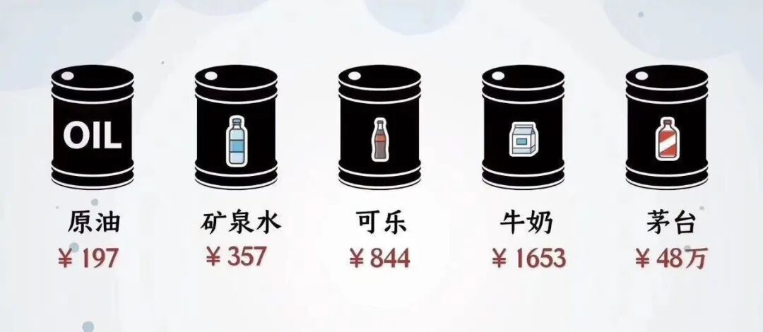 网传价格对比图:一桶原油的价格连矿泉水都不如