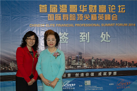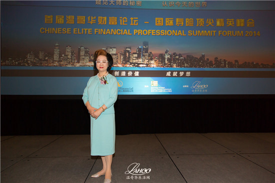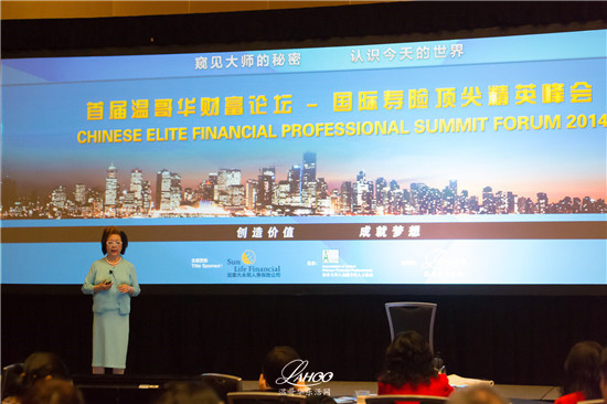 【温哥华乐活网 乐雨报道 SUYIHENG摄影】9月16日,由加拿大华人金融专业人士协会(AUCFP)主办,加拿大永明人寿保险公司赞助,温哥华乐活网提供策划支持的首届温哥华财富论坛国际寿险顶尖精英峰会(Chinese Elite Financial Professional Summit Forum 2014) 在温哥华会议中心圆满召开。来自中国大陆、台湾、美国和加拿大两岸四地的4位顶尖华人寿险营销大师、TOT/MDRT终身会员将现身说法,分享平时难以与外界道出的保险营销经验与理财感悟。主讲人之一的林国庆女士从美国远道而来,为听众们解读保险营销及财富创造核心秘诀。
