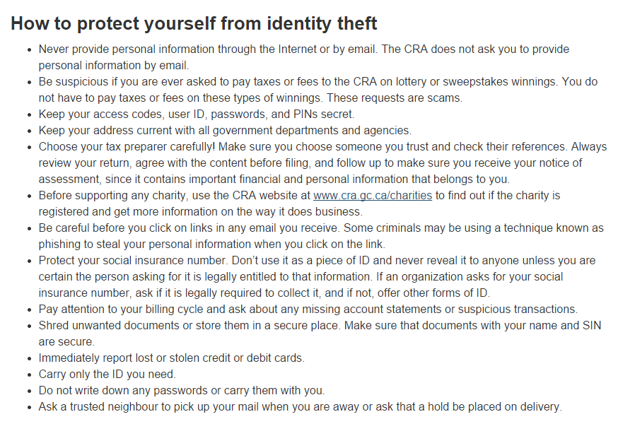 这类骗局看似低级却总有人上当,对此,加拿大税务局的官方网站提供了一些提醒民众注意防范的贴士: