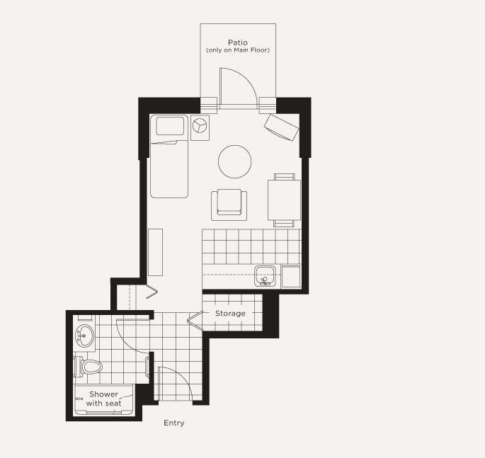 单身公寓:有小厨房和私人浴室