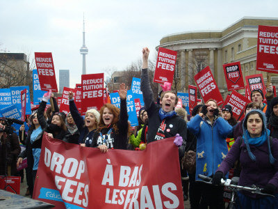 安省大学生因为学费高昂,曾于去年组织抗议游行。(资料照片)