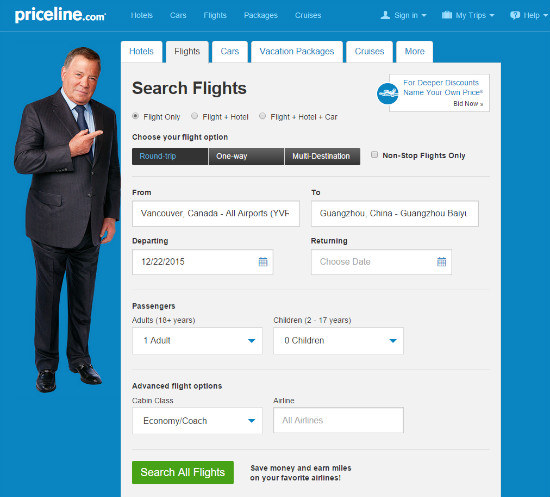 Price line这个网站有个独特的功能,就是能帮你组合两个不同航空公司的航班,让你买到比正常情况便宜的转机机票。另一大特色是提供竞价,这样您可以通过竞价方式拍到最便宜的机票或宾馆。