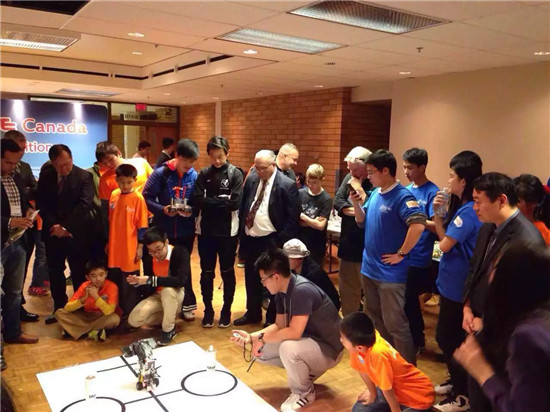 【温哥华乐活网讯】首届RoboRAVE加拿大国际机器人大赛2015年12月11日、12日在UBC大学举办。来自大温哥华地区各城市29所中小学校56位各族裔的学生,以及2支来自南美哥伦比亚的队伍,共组成18支队伍参加了比赛。由Kevin Fan 和Brian Chen组成的二人组获得了高年级组巡线项目和灭火项目冠军,Sophina Zhou、Hannah Qin、Heather Zhang和Hanson Qin获得低年级组巡线任务冠军。Kevin Zhang、Marko Pocrnjic、Benjemyn Szymanski获得低年级组灭火任务冠军。“RoboRAVE 国际机器人比赛”由Intel公司发起,由世界著名的机器人大赛之一,加拿大是首次主办此项赛事。
