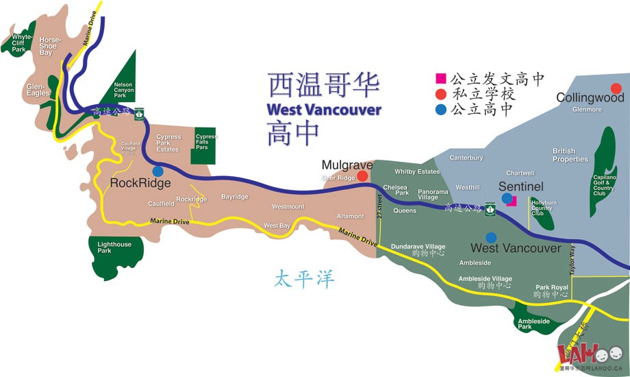 由于私立学校并不容易进去,所以Rockridge Secondary 和 Sentinel Secondary 就成了华人子女最想进入的学校。因为华人对子女的教育相当重视,所以,有这两所学校的学区,被称为好学区。处于这两个好学校学区内的房子,也比其他区的房子好卖。