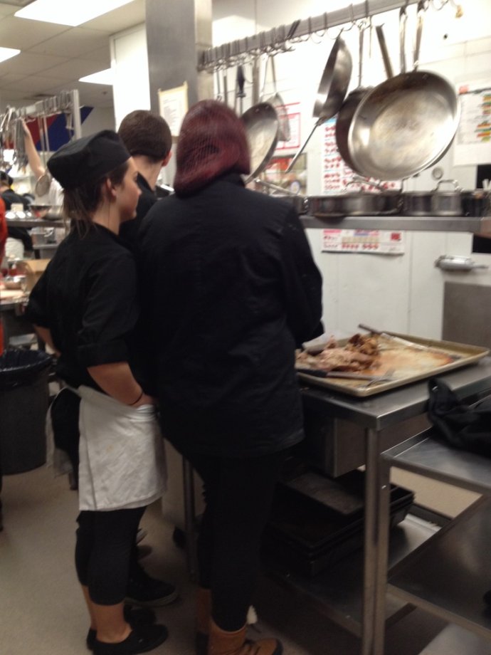 在家政学方面,塞米亚摩中学的烹饪艺术课也令人大开眼界。学校专门聘请了一位主厨担纲教学工作,各种厨具、调料一应俱全。学生们正在忙碌地烹制各式美味,空气中弥漫着诱人的香味。据主厨介绍,学生烹制的食品中午会售卖给其他学生当午餐,这是典型的在做中学。通过与饭店的实习项目,选修烹饪课的学生毕业后甚至可以直接去餐厅工作。这对于热爱厨艺的学生来说,也是一个不错的职业选择。一同参观的朋友感慨到,看来在加拿大只要有绝活手艺,还可以到高中找一份工作,比如这位主厨,还有那些裁缝、木匠,吉他手等。