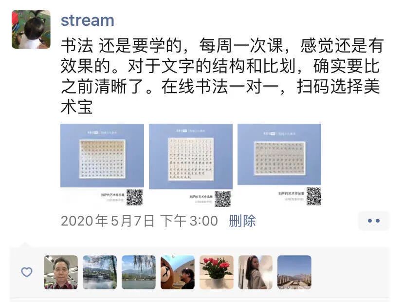 后来因为我们要搬到芬兰,我不得不又再次寻找合适的线上书法课,因为在国外想找个书法老师实在是太困难了!我在和朋友聊天时说起想找书法线上课,没想到朋友说美术宝可以上在线一对一的书法课,美术宝其实之前就在朋友圈里看过朋友推荐,但是从没想过可以用来上书法!